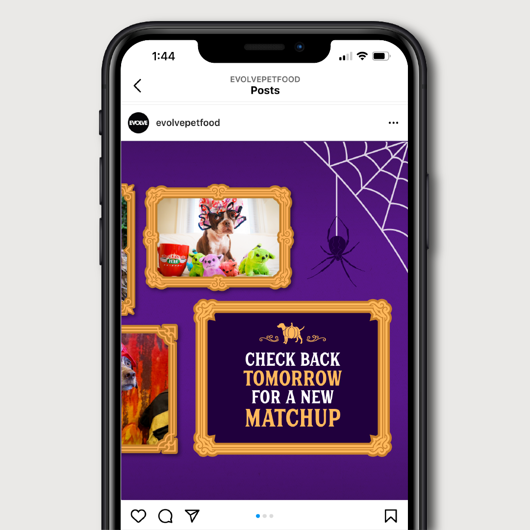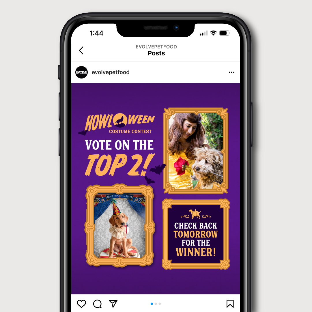 Instagram Campaign for Evolve Pet Food centered around a pet halloween costume competition.